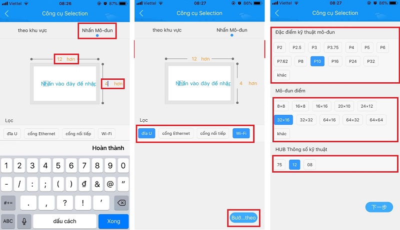 - Chọn kích thước điểm ảnh phù hợp với loại module chọn bên trên: